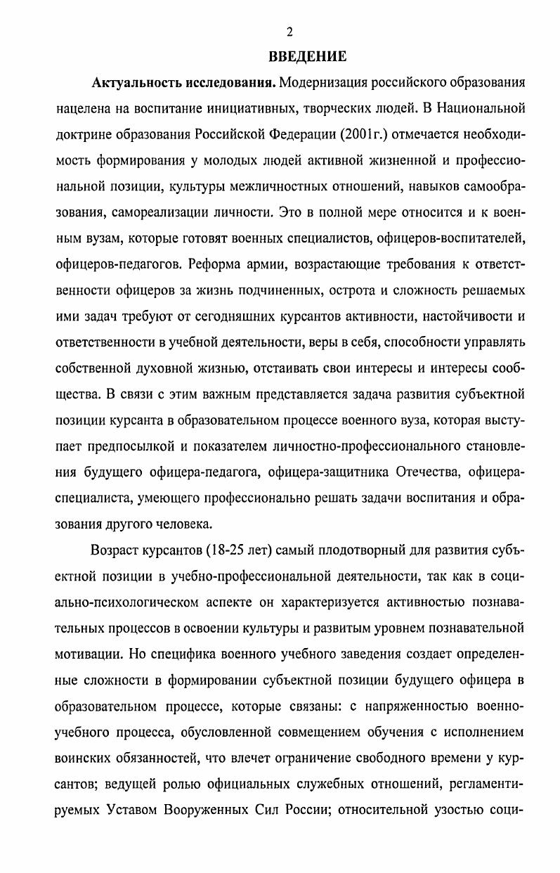 ГЛАВА I. Психологопедагогические основы развития субъектной позиции будущих офицеров в образовательном процессе военного вуза