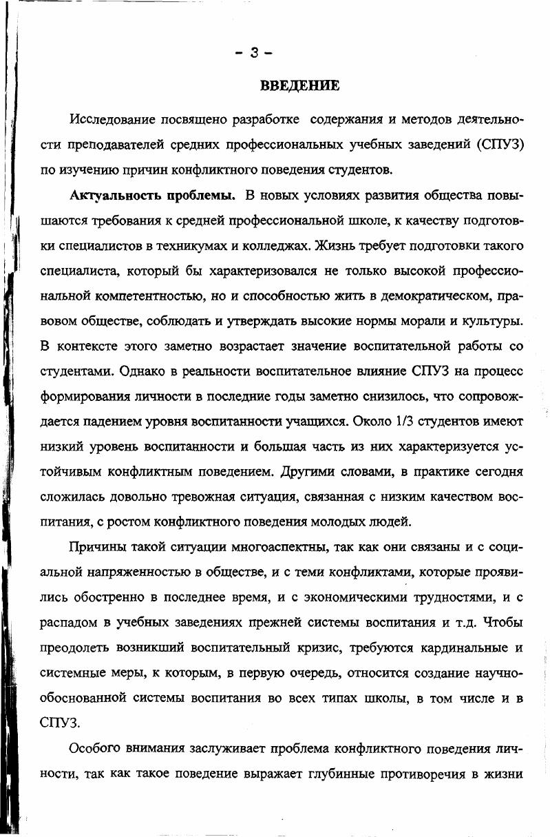Глава 1. Проблема изучения причин конфликтного поведения студентов средней профессиональной школы